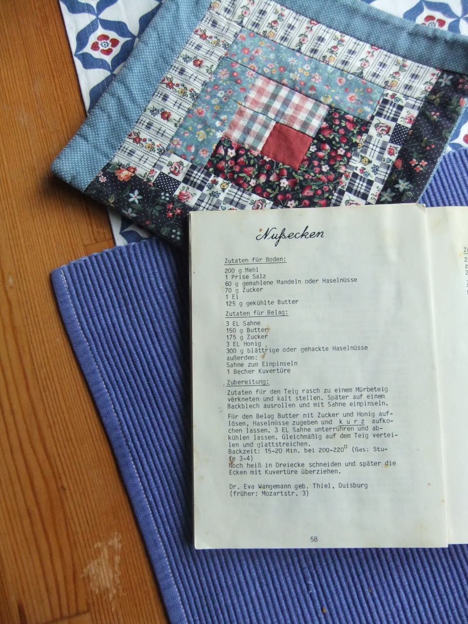 Heute verrate ich Euch mein weltallerbestes Rezept für Nußecken! Seit mehr als 20 Jahren backe ich die Nußecken danach und sie rufen immer wieder Begeisterung bei Jung und Alt hervor. Es stammt aus einem weiteren meiner Lieblingskoch- und Backbücher "Auf Henriette Davidis Spuren", einer Rezeptesammlung vieler Frauen, herausgegeben von der Ev. Kirchengemeinde Volmarstein aus dem Jahr 1987! Das Nußeckenrezept hat freundlicherweise Frau Dr. Eva Wangemann, geb. Thiel aus Duisburg darin abdrucken lassen!