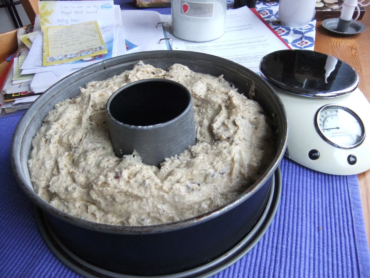 Den Teig in eine gefettete fein mit Mehl bestäubte Kranzform füllen.