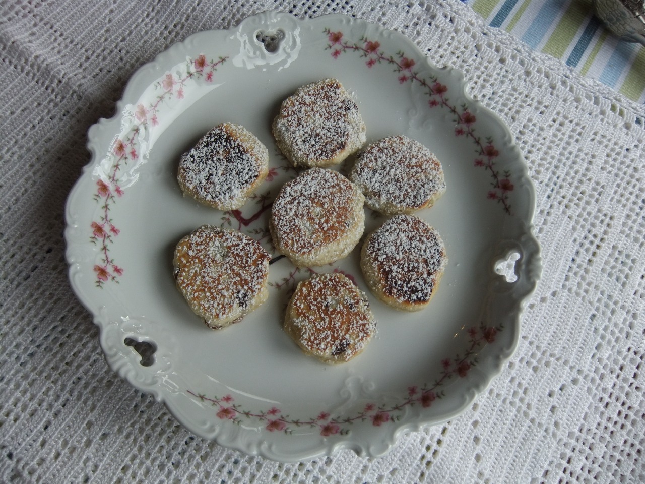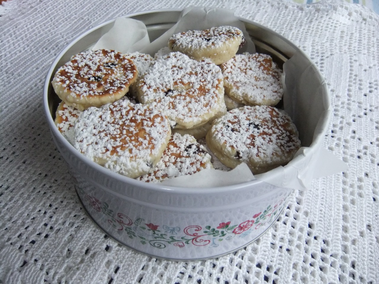 Wer mich kennt, weiß inzwischen, dass ich "Ganzjahres-Plätzchen-Bäckerin" bin! Aber warum auch nicht, weshalb sollte sich das Plätzchenessen nur auf ca. 6 Wochen in der Vor- und Weihnachtszeit beschränken? Natürlich ist es etwas besonderes! Aber wenn wir mal ehrlich sind, kaufen wir in der Restzeit des Jahres (10-11 Monate) auch Plätzchen und essen sie ganz gerne! Und warum sollte ich die dann nicht auch selber backen? Denn es gibt neben den auch sehr köstlichen bekannten Weihnachtsplätzchen jede Menge wunderbare Plätzchen, Kekse, Cookies, die auch im Restjahr sehr einmalig gut schmecken! Angefangen habe ich vor 2 Jahren, als mir eine wunderbares Cookie-Rezept über den Weg gelaufen ist (ne, hab im Internet danach gegoogelt) und immer öfter habe ich Kekse, die ich/wir gerne essen, gegoogelt und häufig festgestellt, wie einfach Manches nachzubacken ist und häufig oder meistens auch vieeel besser schmeckt! Wie einfach ist es, einfach mal short bread selber zu backen! Heute habe ich ein tolles Rezept über "Welsh cakes" , also Walisische kleine Kuchen! Kuchen deshalb, weil sie durch die Art der Zubereitung in der Pfanne etwas weich und saftig schmecken, also kuchenartig! Es gibt sie auch als "Welsh cookies", dann wird der gleiche Teig im Ofen gebacken! Das habe ich aber noch nicht ausprobiert! Auf das Rezept gekommen bin ich durch ein Urlaubsmitbringsel aus England, nämlich "Welsh cakes", die unbeschreiblich lecker waren! Gewundert hat mich die kurze Haltbarkeit und so habe ich ein bißchen nachgeforscht und das Rezept gefunden, was ich heute mit Euch teile! Welsh cakes werden frisch gebacken und können sowohl direkt warm aus der Pfanne oder auch erkaltet gegessen werden! Nach meiner Erfahrung halten sie auch ganz prima 1- 1 1/2 Wochen eingedost und können so immer mal zum Kaffee genossen werden!